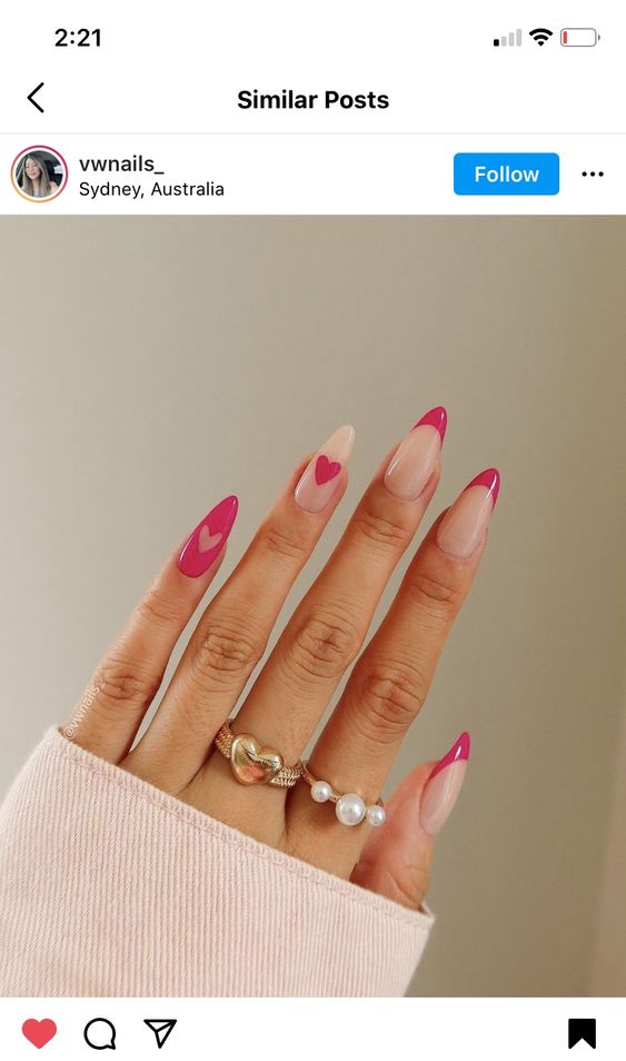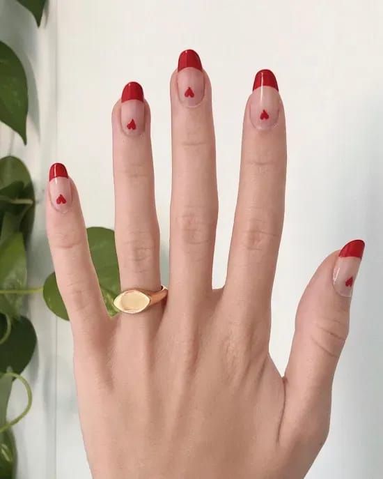 Por fim, ainda existe a ideia de fazer alguns coraçõezinhos em cima das unhas para imitar o efeito da manicure francesa.