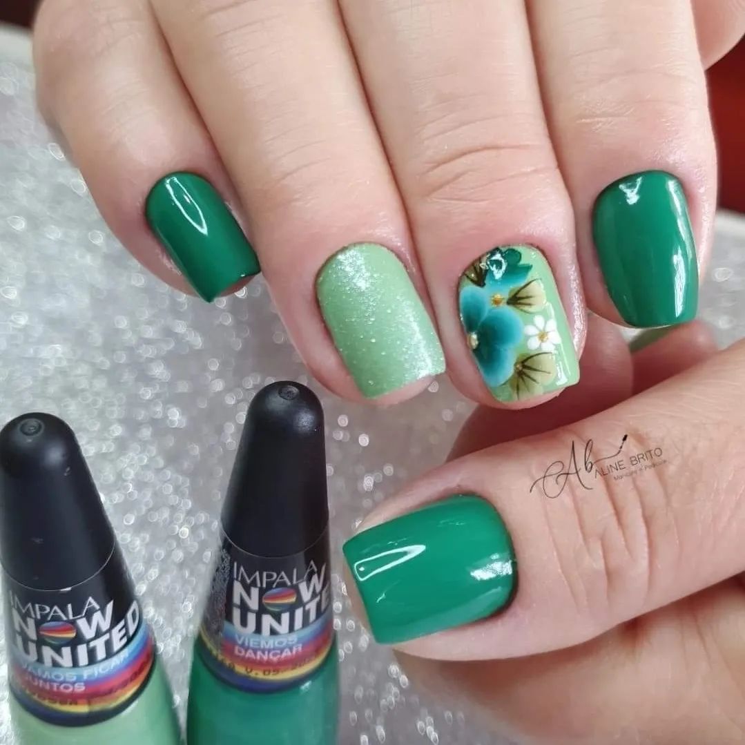 Quer conferir essa grande opção de ideia? Então confira esta seleção que fizemos para você. Esmalte verde já é lindeza, agora imagina unhas verdes decoradas? Com essa cor é possível criar as mais diversas artes. E não importa qual esmalte você vai pintar.