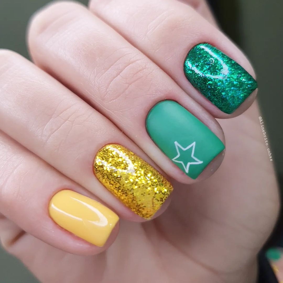São pedras, esmaltes bem brilhosos, versões foscas, foil e tudo que você imaginar para decorar suas unhas verdes! Faça o que fizer, desde que se adapte à sua personalidade.