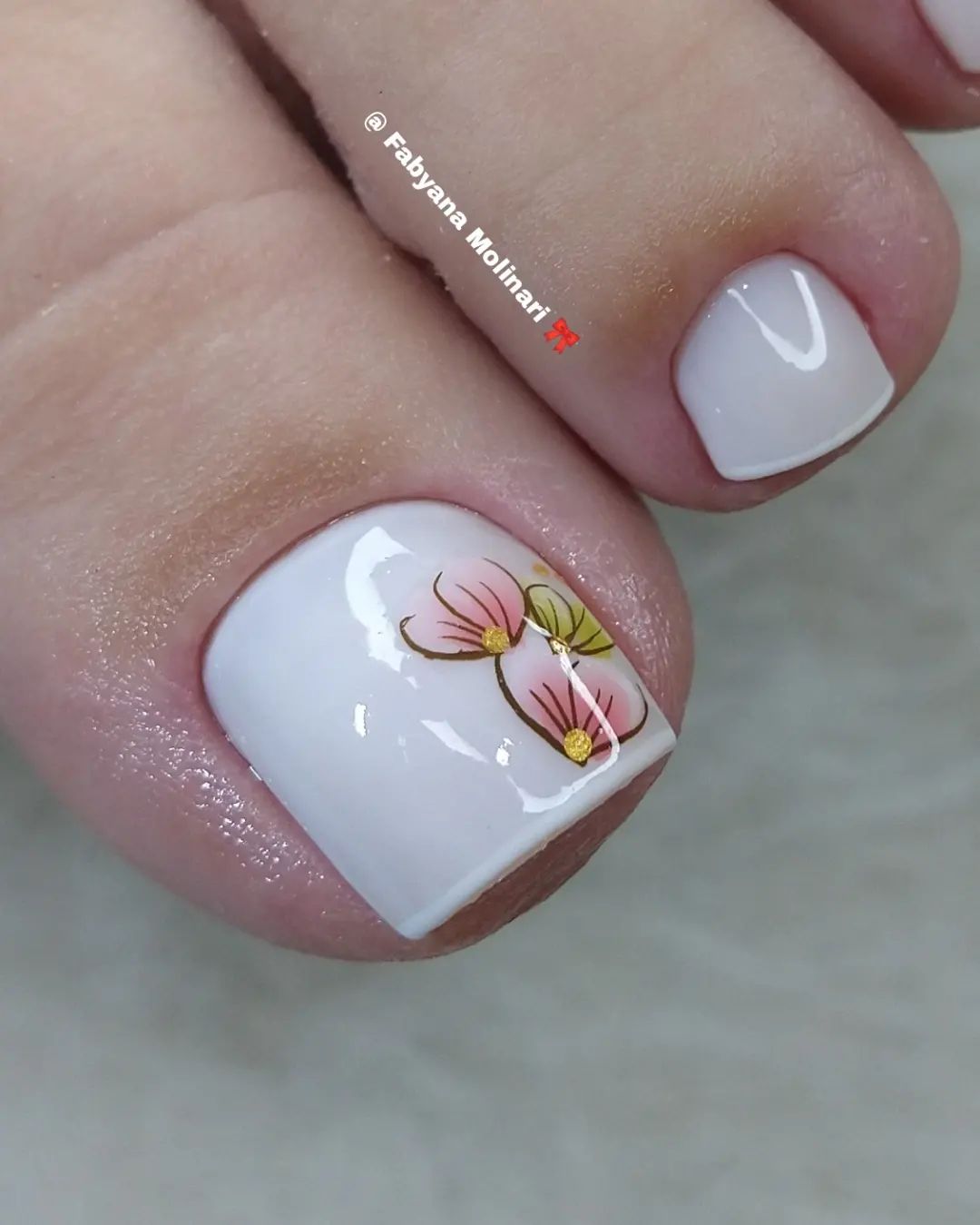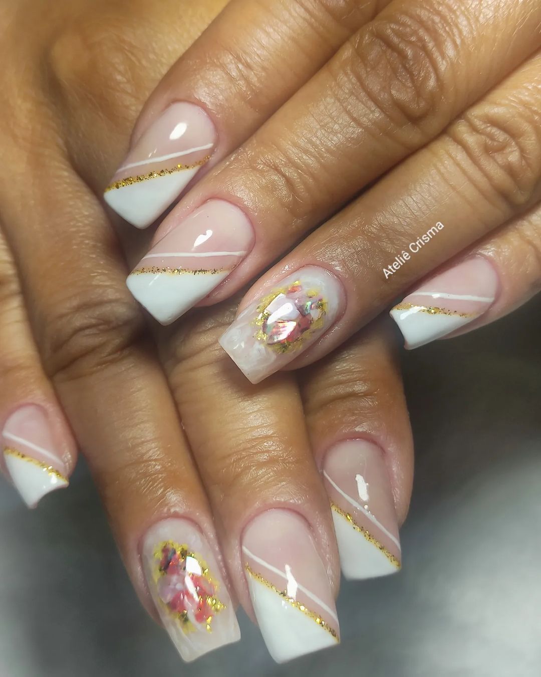 - Unhas com desenhos de flores: essa é uma opção clássica e delicada, que pode ser feita com esmaltes de tons pastel ou com desenhos mais elaborados feitos à mão livre ou com carimbos.
