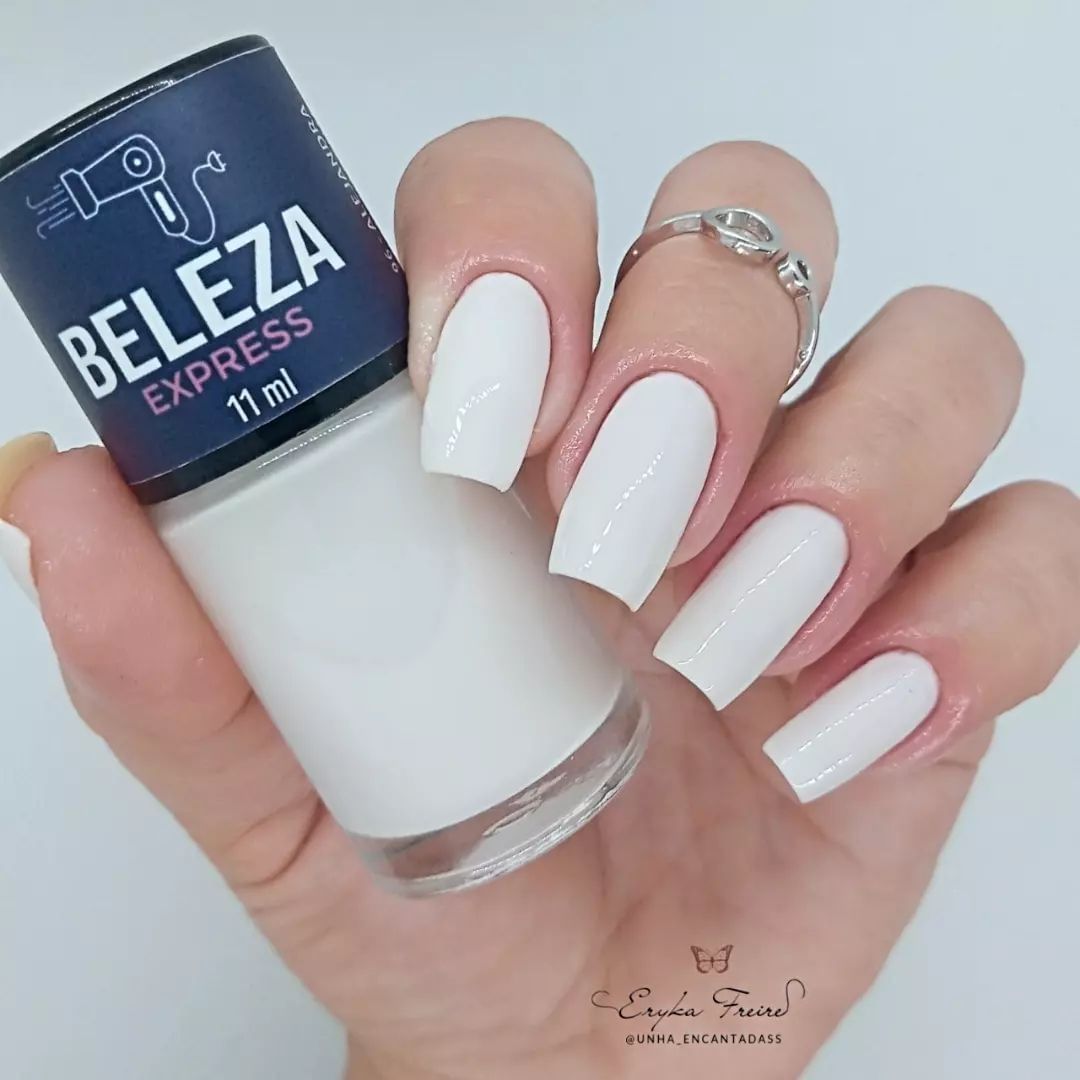 Esmalte Branco Fosco – Para quem quer fugir com os acabamentos mais clássicos para unhas brancas, uma opção é um esmalte fosco e sem brilho. As unhas brancas podem ser pintadas com a opção de esmalte branco com acabamento fosco ou podem ser pintadas com esmalte tradicional e cobertas com base fosca, proporcionando o efeito opaco do esmalte tradicional.