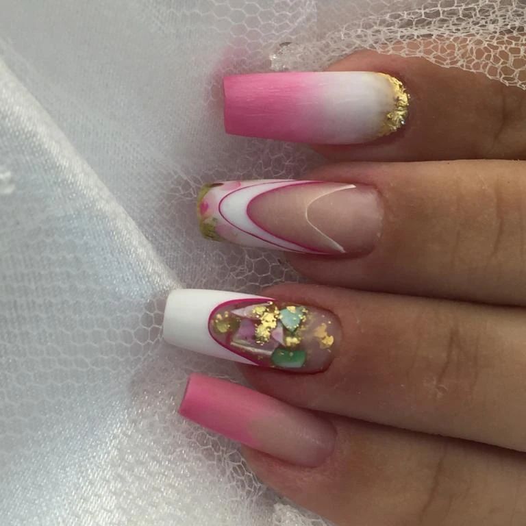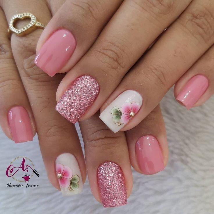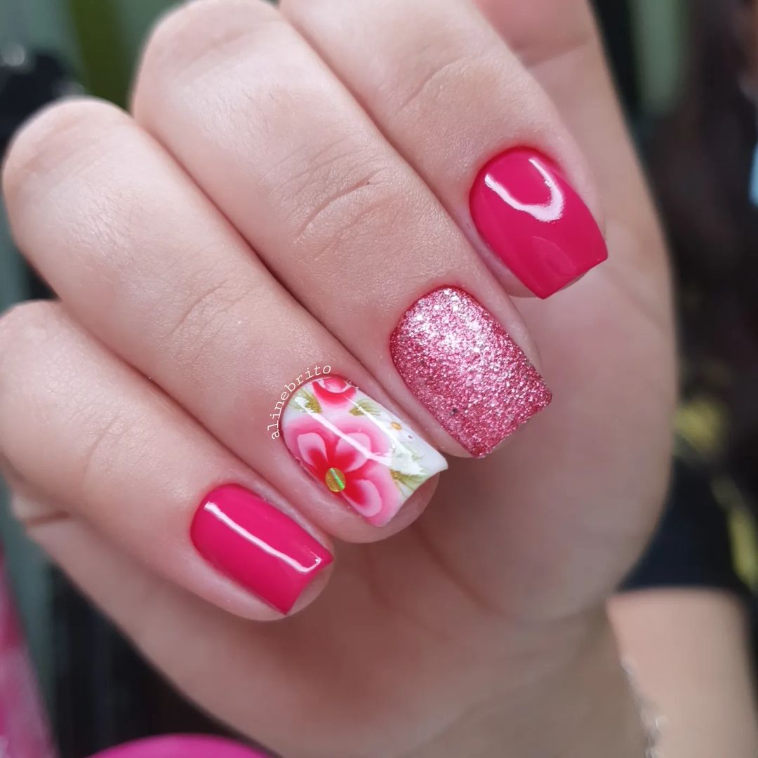 Outra maneira de estilizar sua nail art rosa 2020 é usar glitter, muito glitter. Essa decoração é para mulheres que gostam de chamar a atenção. E existem muitas formas de usar glitter, você pode pintar as unhas já com glitter ou aplicar glitter no verso. Use sua imaginação e arrase.