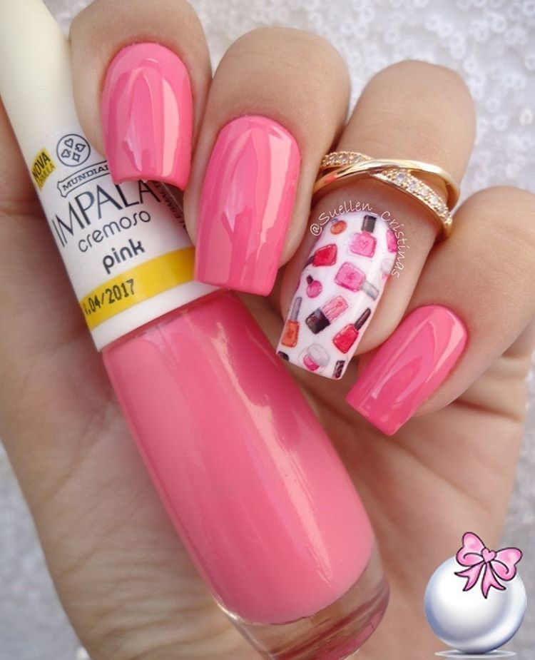 Uma boa opção para deixar as unhas rosa é decorar uma menina única. O que é filho único? É quando você deixa apenas uma unha com uma decoração diferente.