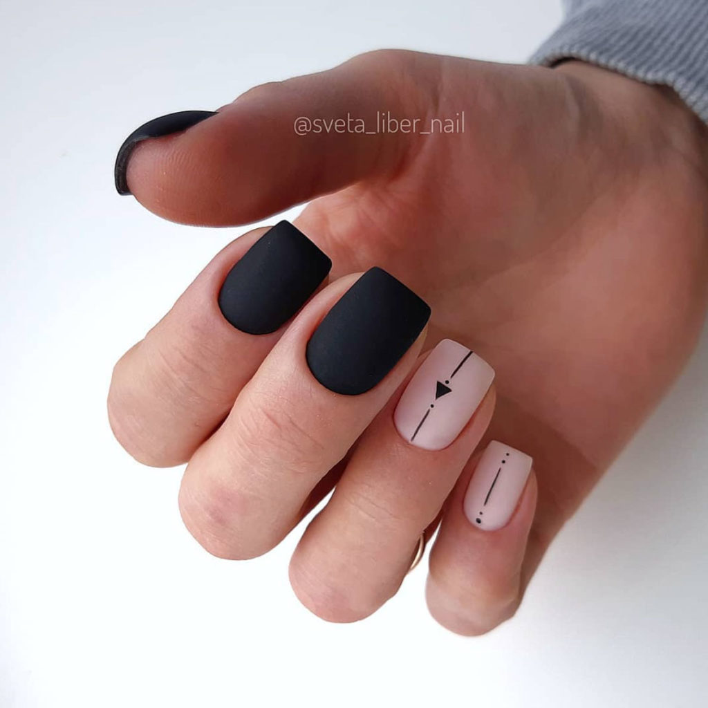 Esta é uma tendência que tem sido destacada recentemente. Unhas pretas foscas, simplesmente lindas. O efeito mate transforma as unhas e dá-lhes um charme especial. Então você pode pintar todas as unhas ou apenas uma ou duas unhas ou adicionar outros detalhes. A variação é a chave para adicionar personalidade à unha preta.