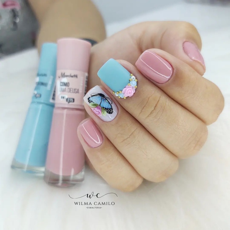 O estilo ideal para quem prefere algo fofo e delicado ao invés de nail art floral, ele se adapta a diversas ocasiões. Por exemplo, é perfeito para casamentos e para a primavera e o verão. Então, se você está procurando um visual romântico, esta é a melhor escolha.
