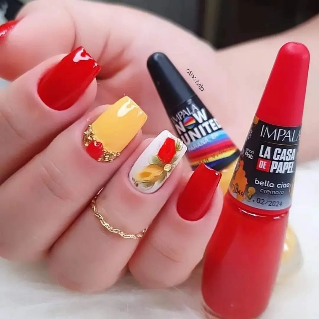 Uma versão permite que você faça suas unhas imediatamente. Existem muitas inspirações na hora de usar esmalte vermelho nas unhas, e além das opções tradicionais de esmalte vermelho, você também pode misturar esmalte vermelho com glitter para um visual de destaque. esmalte. Você pode usá-lo para pintar as unhas para um visual lindo e elegante.